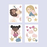 Dekoriere das Kinderzimmer mit supersüßen Feen! In diesem Paket erhältst Du drei Feen und verschiedene passende Elemente, die sich ganz einfach auf sauberen, gestrichenen Wänden anbringen lassen. Wie wäre es zum Beispiel mit einer Dekoration über dem Bett oder über dem Schreibtisch?